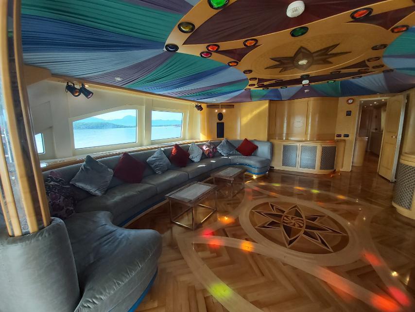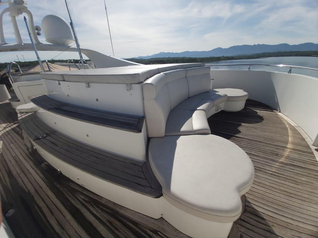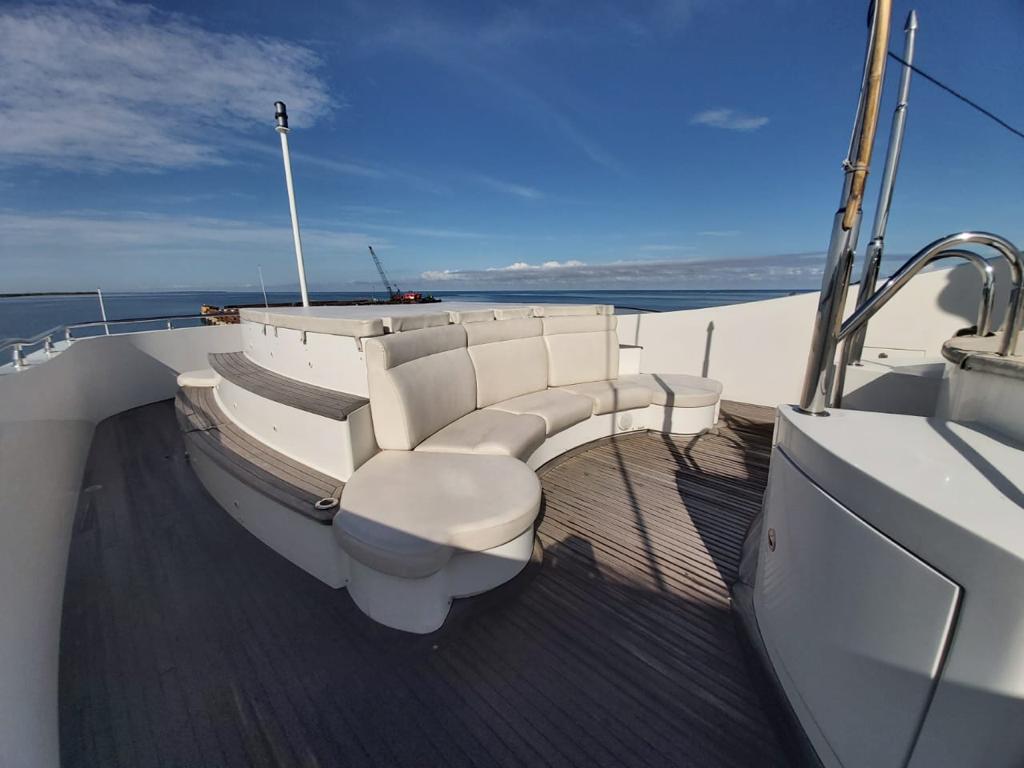 ● Flybridge complet : jacuzzi, bar, réfrigérateur, coin repas pour 12 personnes, espace