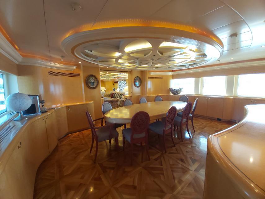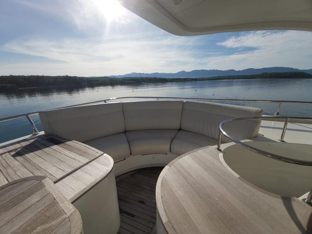 Son flybridge spacieux accueille un jacuzzi, un bar, un bain de soleil, une table pour 12